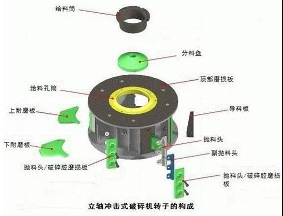 下面我们以制砂机为例,介绍其核心部件转子中的分料盘、抛料头、导料板和铁砧的材质选择。