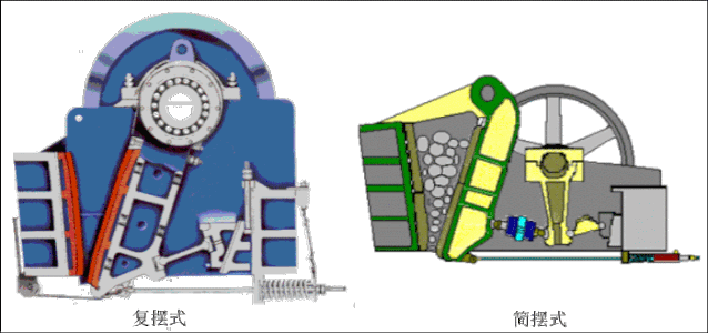 颚破工作是间歇式的,由定颚和动颚摆动对石料挤压完成破碎。前段时间有朋友留言咨询简摆颚破,实际现在已很少会用,主要以复摆式颚破为主。