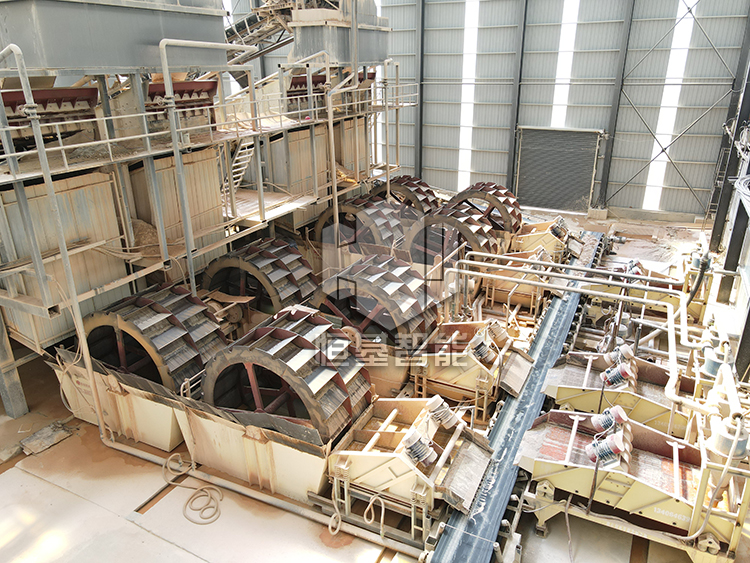 然后,制砂机进行破碎,送回振动筛分离,分离的石子一部分进入经洗砂机和脱水筛出成品料,另一部分送到制砂机;
