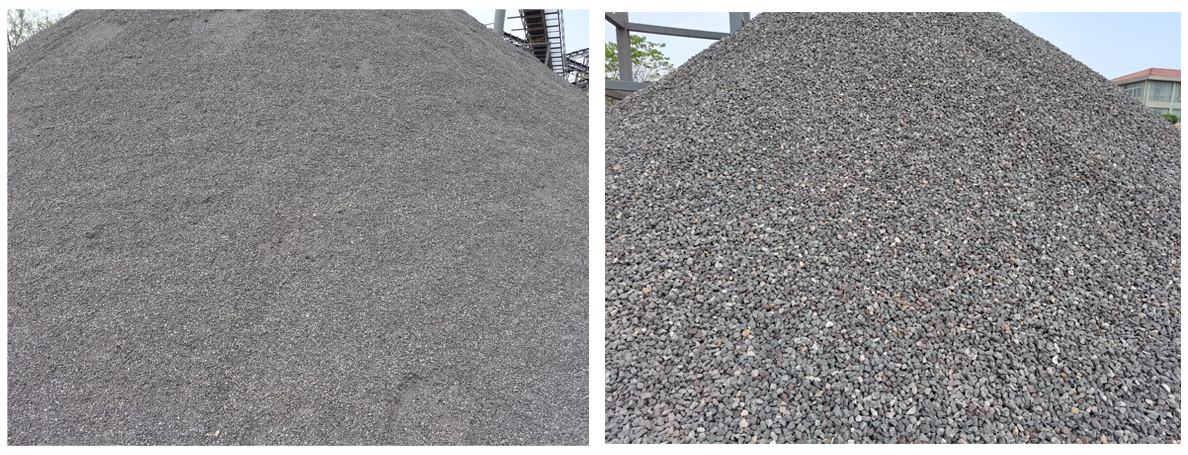 节能环保的制砂生产线通过对石料的破碎整形、空气动力筛分选粉、颗粒级配调整,从而达到生产工程建筑混凝土所需的高品质精品机制砂,成品骨料粒型好,级配好。