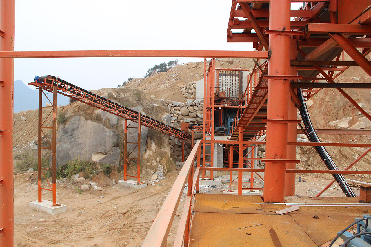 客户主要石材来料是块度比较大的花岗岩,硬度较大,一般都采用颚破加圆锥破的破碎方式。