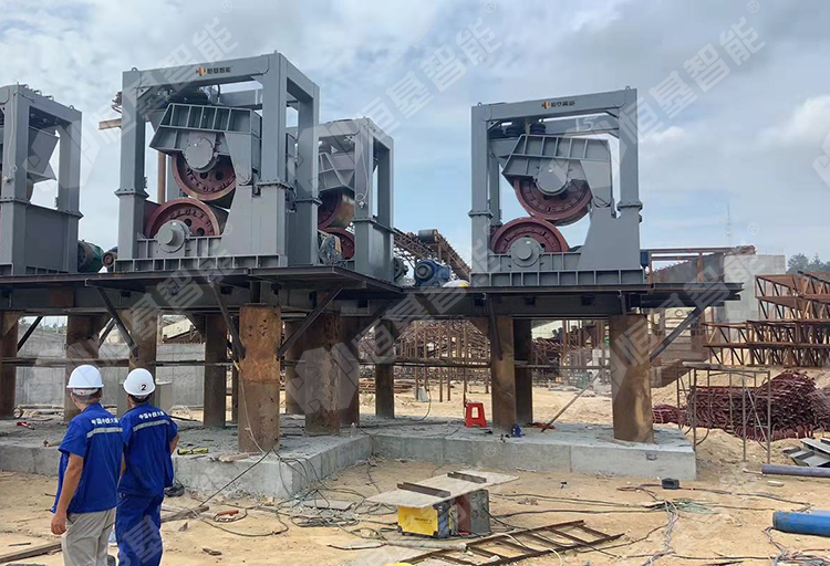 辊面磨损后,排料口宽度增加,需要对活动辊进行调节(单辊破碎机则调节颚板)。调节时需要注意保持两个辊子相互平行,防止歪斜。